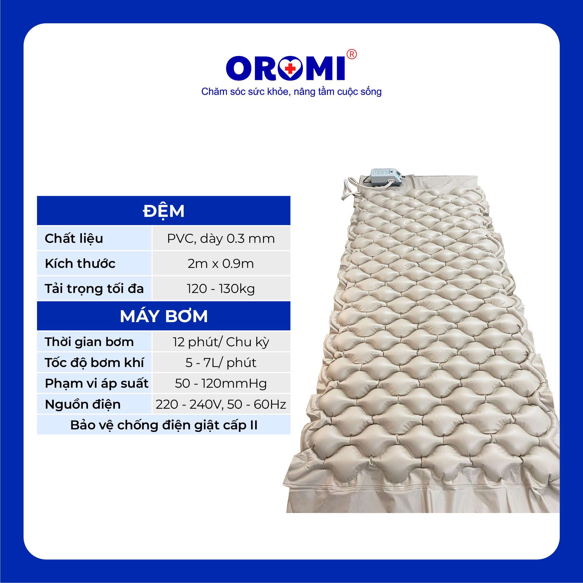 An toàn: Không đặt đệm và máy bơm hơi cạnh nguồn nhiệt hoặc hút thuốc gần thiết bị.