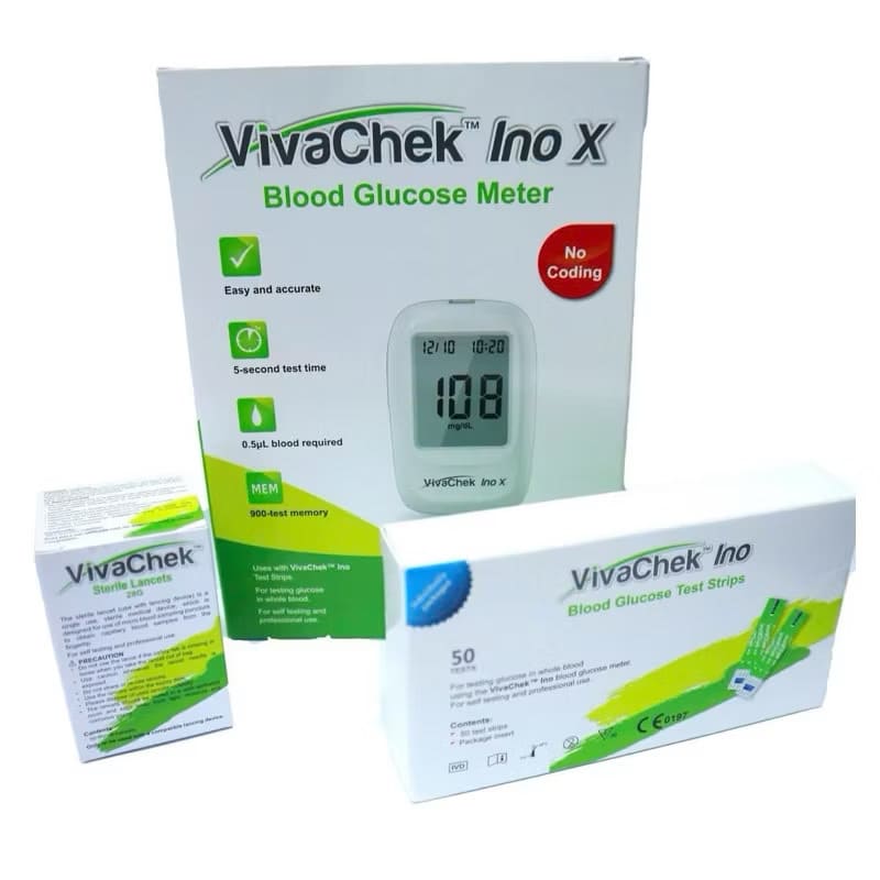 | TRỌN BỘ Máy VivaCheck Ino | 01 Máy đo đường huyết VivaCheck Ino (kèm pin) + 01 Bút lấy máu + 50 Kim + 50 Que thử | 500.000 VNĐ |