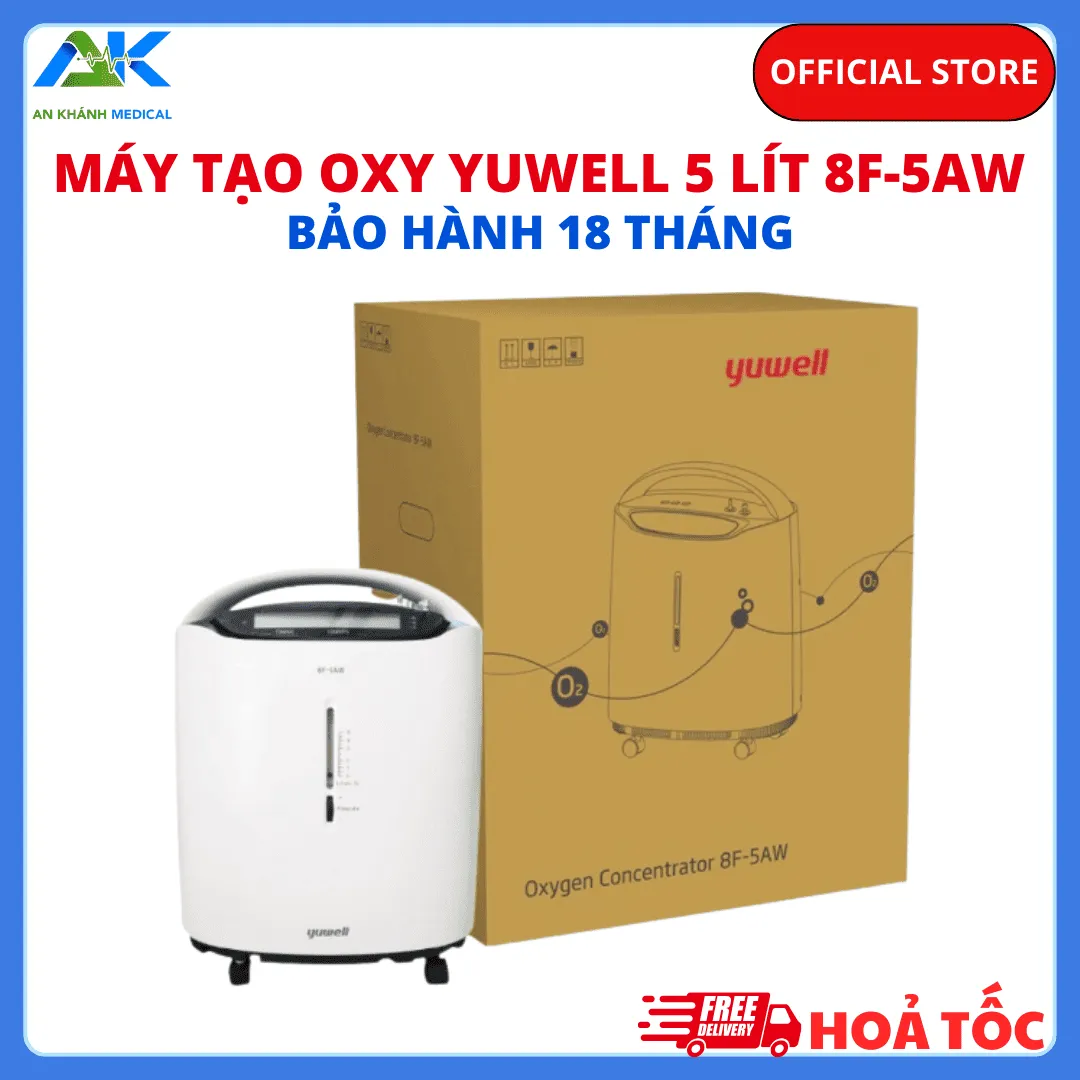 Máy tạo oxy Yuwell 8F-5AW là dòng thiết bị y tế cao cấp dung tích 5 lít, được tin dùng rộng rãi tại các bệnh viện lớn và hộ gia đình nhờ khả năng vận hành bền bỉ và tạo nguồn oxy tinh khiết chuẩn y tế. Với thiết kế hiện đại tích hợp tính năng xông khí dung và tạo ion âm, sản phẩm là trợ thủ đắc lực trong việc chăm sóc sức khỏe cho người mắc bệnh hô hấp, người cao tuổi và bệnh nhân phục hồi sau điều trị.