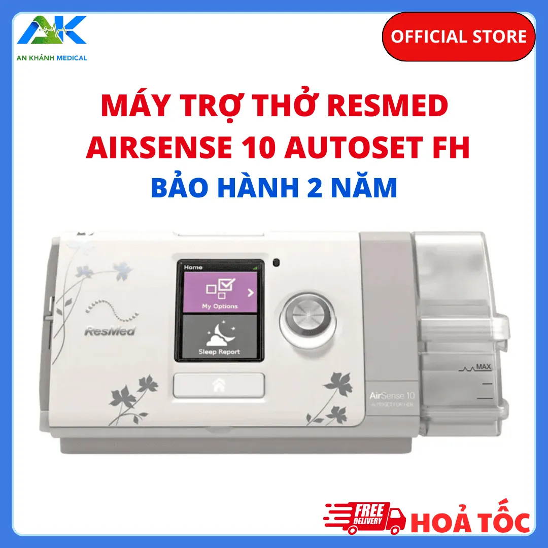 - Trả lời: Máy trợ thở ResMed AirSense 10 AutoSet For Her CPAP/APAP tương thích với hầu hết các loại mặt nạ CPAP/APAP tiêu chuẩn trên thị trường (mặt nạ chụp mũi miệng, mặt nạ chụp mũi, mặt nạ đệm mũi). An Khánh Medical cung cấp đa dạng các mẫu mặt nạ chính hãng ResMed để người dùng lựa chọn phù hợp nhất với khuôn mặt và thói quen ngủ của mình.
